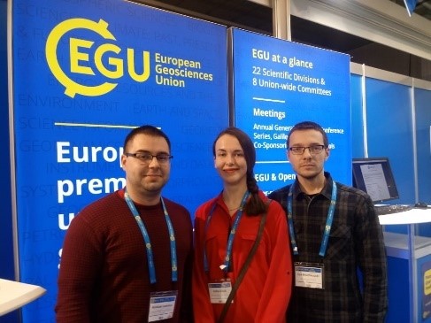А.А. Ломако, О.О. Силюк и И.О. Бручковский на конференции «General Assembly 2019 of the European Geosciences Union»
