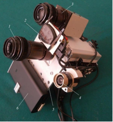 1 – ФСР02; 2 – мультизональная камера Parrot Sequoia; 3 – камера “Baumer”; 4 – обзорная RGB камера; 5 – кронштейн; 6 – аккумулятор |