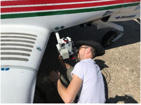 При проведении съемок на самолете Diamond DA 40NG МКСС1 размещается на внешней подвеске (на подножке). Для этого был разработан и изготовлен специальный кронштейн крепления.