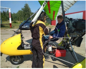 Для проведения съемок с мотодельтаплана МАИ980У используется мультиканальный спектральный сенсор МКСС1 и управляющий ноутбук. МКСС1 монтируют на внешней подвеске мотодельтаплана под оператором, а управляющий ноутбук располагается на коленях оператора.