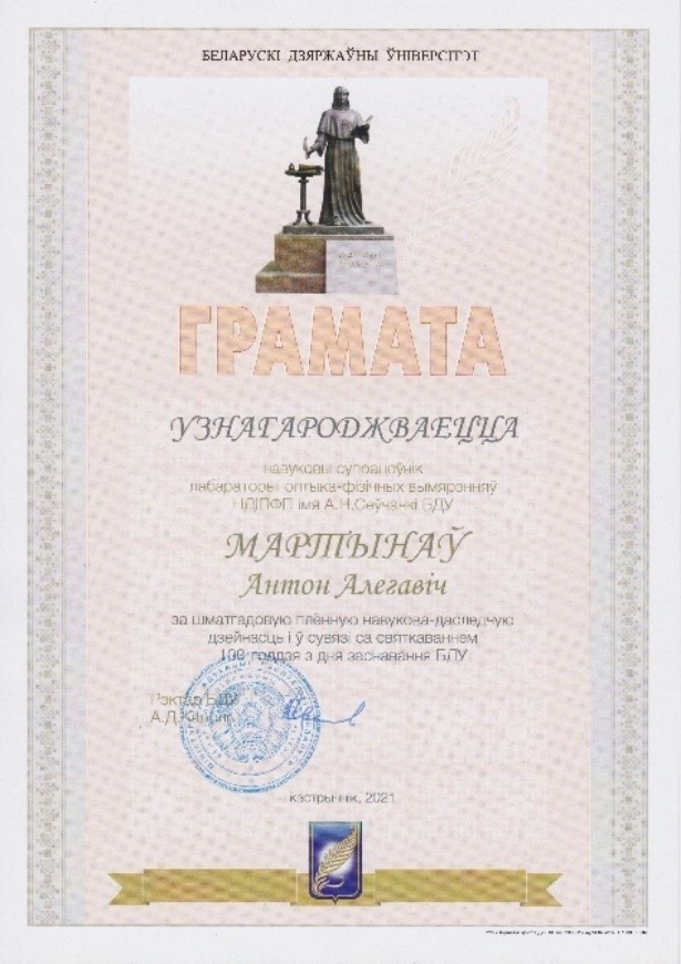А.О. Мартинов награжден “Грамотой” БГУ!