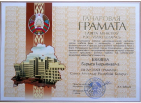 20 сентября 2016 г. Беляеву Б.И. вручена Почетная грамота Совета министров Республики Беларусь за "многолетнюю плодотворную научно-исследовательскую деятельность,существенный особый вклад в разработку комплекса видеоспектральной аппаратуры дистанционного зондирования Земли с Международной космической станции" |