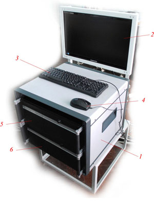 II. Рабочая станция (РС) предназначена для тестирования и управления БОД, а также приема , записи и хранения данных БОД и создана на базе промышленной платформы стандарта PICMG 1.3. Управление модулями производится с помощью специального программного обеспечения: тестирования и управления съемочными камерами МСВ; программы тестирования и управления МС, МИК, МЛВ, МСК и GPS.