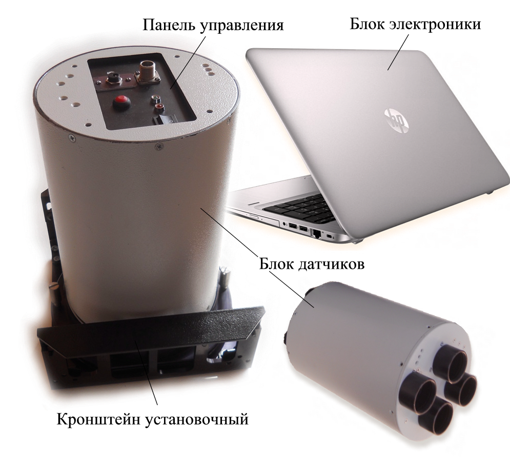 Беспилотный комплекс авиационного спектрометрирования БЕКАС представляет собой комбинацию двух устройств: беспилотного летательного аппарата (БПЛА) DJI Matrice 300 RTK и комплекса мультиспектральной съемки (КМС), предназначенного для проведения видеосъемки и дистанционных измерений спектральных оптических характеристик подстилающих