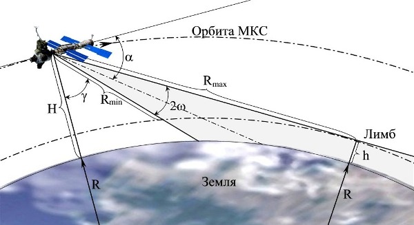 При угле поля зрения обоих каналов 2ω=21,7°, высоте орбиты МКС Н≅400 км и направлении оптической оси прибора под углом α≅28° вниз и вперед по отношению к направлению полета МКС (касательной к орбите) в поле зрения системы попадают все направления наблюдения от тангенциальных к высоте h=100 км (лимб) до наклоненных под углом γ≅51° к надиру. Расстояние до наблюдаемых явлений (с учетом их высоты) изменяется от Rmax≈2000 км (лимб) до Rmin≈550 км, центру поля зрения соответствует расстояние 750―800 км.