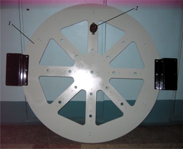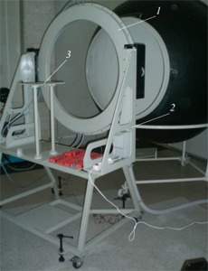 Для этого конструкция осветителя сферы содержит крепления для 30 галогенных ламп, равномерно располагающихся по окружности осветителя вокруг выходного отверстия фотометрического шара на фланце, к которому крепится кольцеобразная четырехсекционная водоохлаждающая камера.