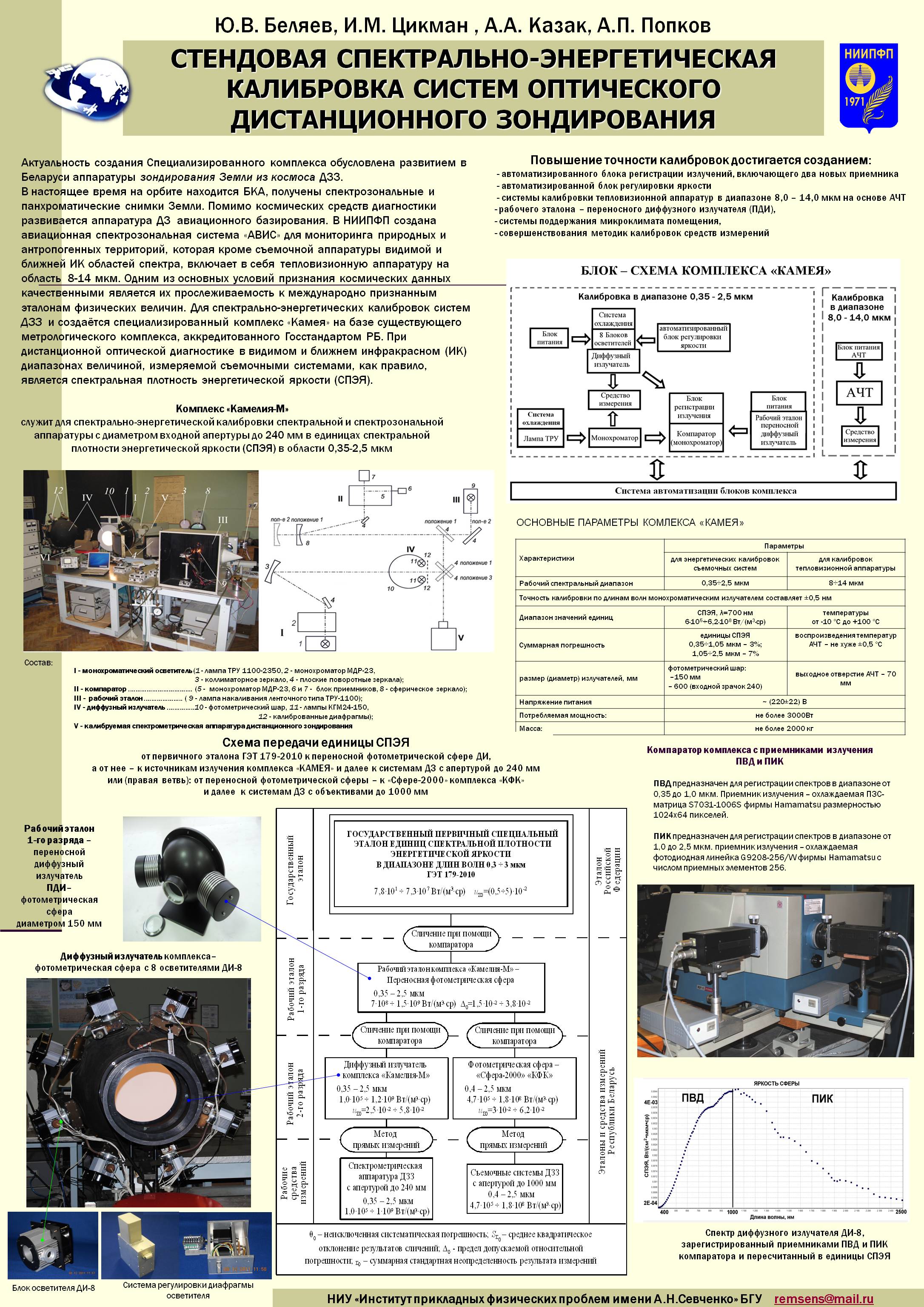 - Стендовая спектрально-энергетическая калибровка систем оптического дистанционного зондирования (Беляев Ю.В., И.М. Цикман, А.А. Казак, А.П. Попков)